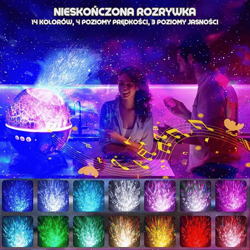 2. To urządzenie to magia zamknięta w skorupce! Różnorodne projekcje kolorów i ulubiona muzyka uczyniły nasze wieczory wspaniałymi.