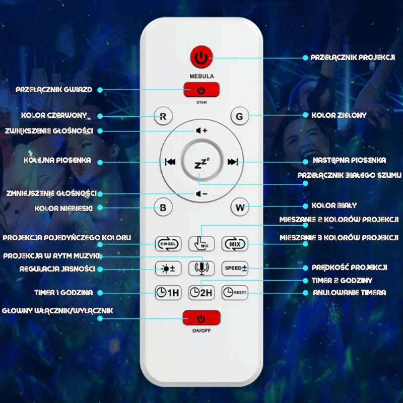 projektor zapewnia unikalną atmosferę zarówno podczas wyjątkowych wydarzeń, jak i w codziennej rutynie. Ożywia każde pomieszczenie, przynosząc dzieciom radość i edukując poprzez zabawę w kosmiczną eksplorację.